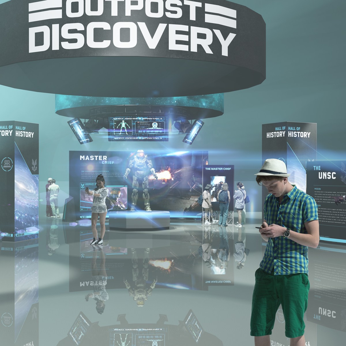 Outpost Discovery is a mobile recruitment and training platform for the United Nations Space Commend (UNSC), the organization that protects and nurtures the humanity of the distant future. The Outpost exhibition is comprised of a UNSC orientation area, The Hall of History and a series of training experiences designed to unite and challenge fans of all ages.